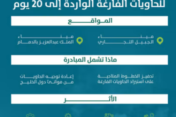 موانئ: تمديد إعفاء الحاويات الفارغة إلى 20 يومًا عبر مينائي الملك عبدالعزيز بالدمام والجبيل التجاري