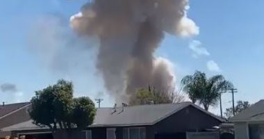 وشوهد عمود ضخم من الدخان فوق منطقة الحادث، فيما لم تتضح بعد الأسباب التى أدت للحريق.