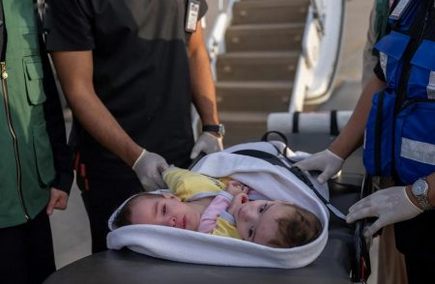 ووصل التوأم السيامي السوري “سيلين وإيلين” رفقة أسرتهما إلى الرياض على متن طائرة إخلاء طبي خاصة، تمهيدًا لإجراء عملية فصل دقيقة ضمن البرنامج السعودي لفصل التوائم السيامية.