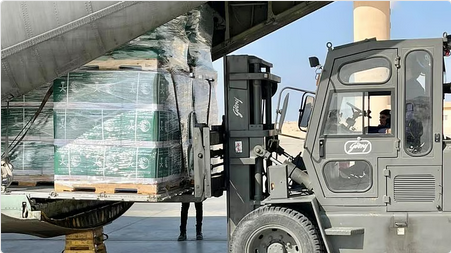 وصلت إلى مطار العريش الدولي بجمهورية مصر العربية اليوم، الطائرة الإغاثية السعودية الـ 55، التي يسيّرها مركز الملك سلمان للإغاثة والأعمال الإنسانية بالتنسيق مع وزارة الدفاع، تحمل على متنها مواد إيوائية وغذائية، تمهيداً لنقلها إلى المتضررين من الشعب الفلسطيني داخل قطاع غزة.