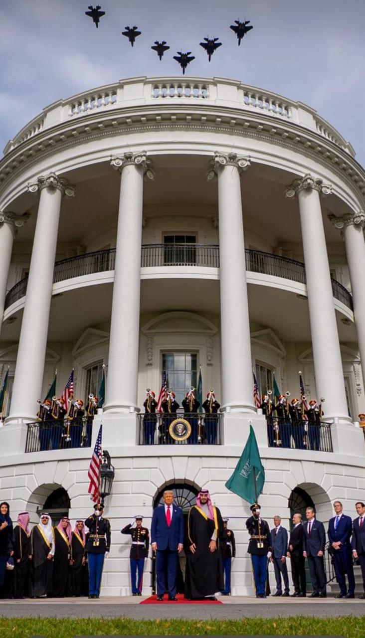 من لحظة الوصول فجرًا إلى باحة البيت الأبيض، كان المشهد مختلفًا… مرتبًا، مهيبًا، ومتقنًا في تفاصيله. العرض الجوي، الاصطفاف العسكري، ورفرفة العلم السعودي إلى جوار العلم الأمريكي في قلب العاصمة، كلها رسائل لا تحتاج إلى تعليق. فالسعودية اليوم لا تطلب مكانًا على الطاولة، بل تحضر بصفتها شريكًا رئيسيًا في تشكيل عالم أكثر توازنًا.