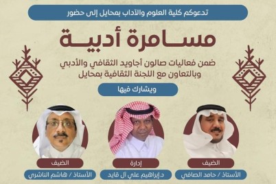 محايل - عبدالله هيازع الأسمري نظم الصالون الثقافي والأدبي بكلية العلوم والآداب بمحايل مسامرة أدبية، بالتعاون مع اللجنة الثقافية...