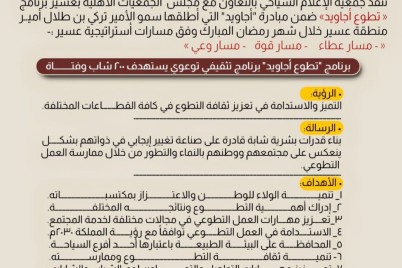عسير - حسن الصعيبي ينطلق في منتصف شهر رمضان المبارك في محافظة بيشة برنامح " تطوع أجاويد" وهو برنامج...