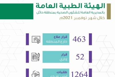 عارف السويدي - حائل استقبلت المديرية العامة للشؤون الصحية بمنطقة حائل، ممثلةً بالهيئة الطبية العامة خلال شهر نوفمبر من هذا...