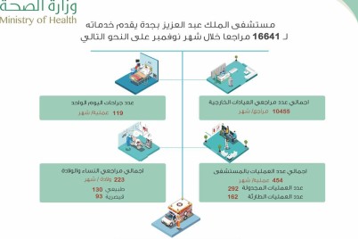 جدة _ ريفان هوساوي قدّم مستشفى الملك عبد العزيز بجدة خدماته لـما يقارب ١٦,٦٤١ مستفيداً خلال شهر نوفمبر الماضي للعام...