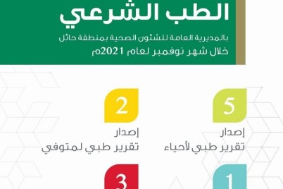 حائل - عبدالله الحايطي أصدرت إدارة الطب الشرعي بصحة حائل، سبعة تقارير طبية خلال شهر نوفمبر من العام الحالي 2021م،...