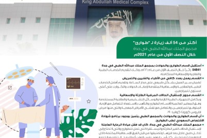 جدة _ ريفان هوساوي استقبل قسم الطوارئ والحوادث بمجمع الملك عبدالله الطبي في جدة، 54841 زائراً خلال النصف الأول من عام...
