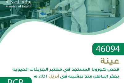 حفر الباطن – جاسم العبود أجرت صحة حفر الباطن ممثلة بقسم مختبر الجزئيات الحيوية 46,094 ألف عينه لفيروس كورونا. وتأتي...