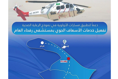 فعّل تجمع الحدود الشمالية الصحي، خدمات الإسعاف الجوي العمودي من مستشفى رفحاء العام، بالتعاون مع هيئة الهلال الأحمر السعودي...