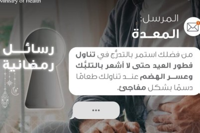 واصلت وزارة الصحة حملتها التوعوية والتثقيفية خلال شهر رمضان المبارك “رمضانك مفتاح” عن تناول فطور العيد. قالت وزارة الصحة...