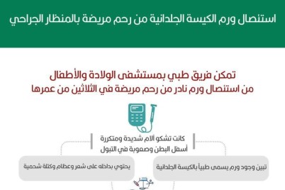 بيشه - ندى الشهري تمكن فريق طبي بمستشفى الولادة والاطفال بيشة من استئصال ورم نادر بالمنظار من رحم مريضة في...