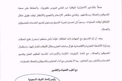عسير - فارس ال معتق أصدر اتحاد الغرف السعودية (الخميس) تعميما وجه فيه باستمرار فتح المحلات، ومزاولة الأنشطة التجارية والاقتصادية...