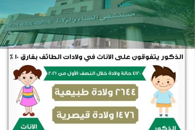 الطائف - هلال اليزيدي كشف تقرير لمستشفى النساء والولادة بالطائف عن 4120حالة ولادة خلال النصف الأول من العام الجاري2021 وتفوق...