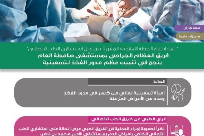 جازان - عادل عمر تمكن فريق العظام الجراحي بمستشفى صامطة العام من تثبيت عظم مدور الفخذ لامرأة تسعينية مصابة بتضخم...