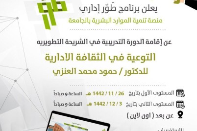 الحدود الشمالية - عبير الشمري يقيم برنامج طور إداري بجامعة الحدود الشمالية دورة التوعية في الثقافة الإدارية للدكتور حمود محمد...