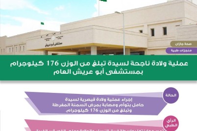 جازان - نوف مجرشي تمكن فريق النساء والولادة بمستشفى أبو عريش العام من إجراء عملية ولادة قيصرية حرجة لسيدة حامل...
