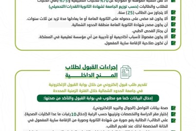 الحدود الشمالية - عبير الشمري أعلنت جامعة الحدود الشمالية عن فتح بوابة القبول الإلكترونية للمنح الدراسية الداخلية للطلبة غير السعوديين...