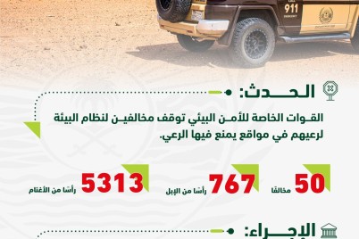 أوقفت القوات الخاصة للأمن البيئي (50) مخالفًا لنظام البيئة، منهم (22) مواطنًا و(28) مقيمًا، من الجنسيات السودانية والباكستانية والهندية،...