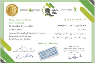 مكة المكرمة - نهاد قدسي حصلت الدكتورة منيرة العكاس على دبلوم تمكين المرأة في حوار القيادة من أكاديمية الحوار للتدريب...