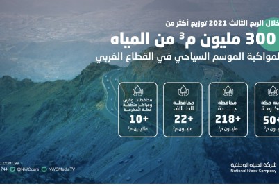 مكة المكرمة - أيوب الشيبة كشف القطاع الغربي بشركة المياه الوطنية أنه وزع أكثر من 300 مليون م3...