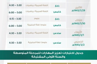 تبدأ وزارة التعليم غدًا، تطبيق اختبارات تعزيز المهارات في مدارس التعليم العام لجميع المراحل الدراسية، وذلك من الصف الثاني الابتدائي...