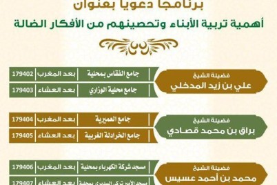جازان - عائشه مجرشي تنظم وزارة الشؤون الإسلامية والدعوة والإرشاد ممثلة بفرعها في منطقة جازان برنامجاً دعوياً بعنوان ”...