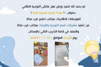 مكة المكرمة - أحمد العثمان نفذت شعبة التوجيه والإرشاد بمكتب تعليم غرب مكة بالإدارة العامة للتعليم بمنطقة مكة...