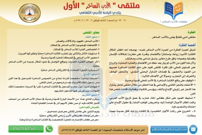 الباحة_جواهر الغامدي ينظم النادي الأدبي الثقافي بمنطقة الباحة ملتقى "الأدب الساخر" الأول وذلك في 21- 23 من شهر ذي...