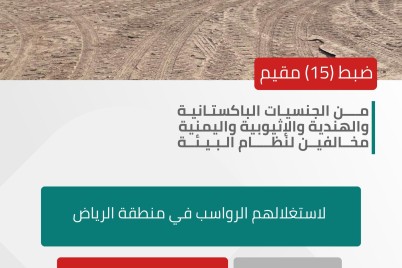 ضبطت القوات الخاصة للأمن البيئي (15) مقيمًا مخالفًا لنظام البيئة من الجنسيات الباكستانية والهندية والإثيوبية واليمنية، لاستغلالهم الرواسب في منطقة...