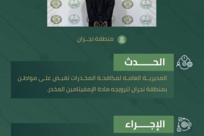 أحكمت المديرية العامة لمكافحة المخدرات قبضتها على مواطن في منطقة نجران، إثر تورطه في نشاطات إجرامية شملت ترويج مادة الإمفيتامين...