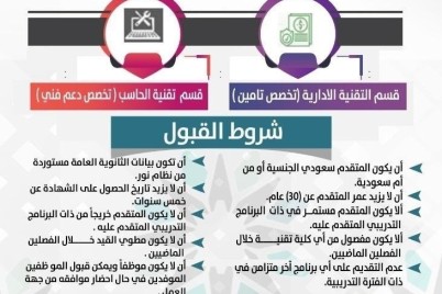 أعلن المعهد الصناعي الثانوي بالقنفذة عن فتح القبول في برامج الدبلوم للفصل التدريبي الثاني، و البرامج المهنية الصباحية للعام التدريبي...