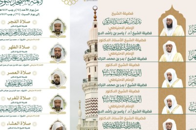 أعتمدت رئاسة الشؤون الدينية بالمسجد الحرام والمسجد النبوي الجدول الأسبوعي لأصحاب الفضيلة أئمة الحرمين الشريفين، للفترة من يوم غد...