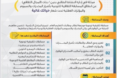 مكة المكرمة- رائد الذبياني أعلنت الإدارة العامة للتعليم بمنطقة مكة المكرمة ممثلة بإدارة نشاط الطلاب بنين - بنات "...