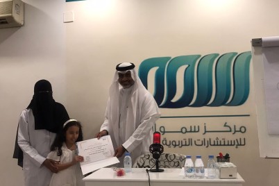 محمد العسيري -مكة المكرمة كرم مدير مركز سمو الفكر للإرشاد الأسري الدكتور سامي الأنصاري مع الأخصائية غادة شوعي الطفلة...