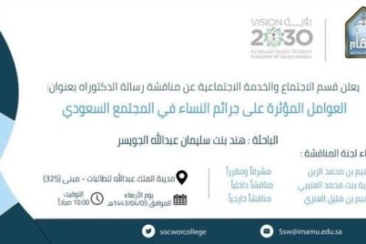 حصلت الدكتورة هند بنت سليمان الجويسر على درجة (الدكتوراة ) في تخصص "علم اجتماع الجريمة"،من جامعة الإمام محمد بن...