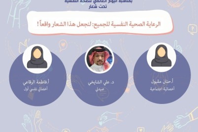 جدة - حمدان الغامدي على هامش فعاليات اليوم العالمي للصحة النفسية نظم فريق هتان التطوعي بالتعاون مع مجمع إرادة َوالصحة...