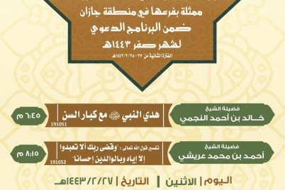 جازان - عبدالله محزري تنظم وزارة الشؤون الإسلامية والدعوة والإرشاد ممثلة بفرعها في منطقة جازان الفترة الثانية من البرنامج الدعوي...
