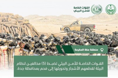 جدة - أفنان الشنقيطي ضبطت القوات الخاصة للأمن البيئي، في محافظة جدة، (5) مخالفين لنظام البيئة من الجنسية السودانية...