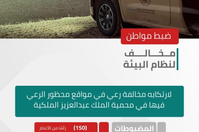 ضبطت القوات الخاصة للأمن البيئي مواطنًا مخالفًا لنظام البيئة، لارتكابه مخالفة رعي (150) رأسًا من الأغنام في مواقع محظور...