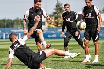 حالة من السعادة بدت على وجة الأسطورة الأرجنتيني ليونيل ميسي في مشاركته الأولى بالتدريبات الجماعية لفريقه الجديد باريس سان جيرمان،...