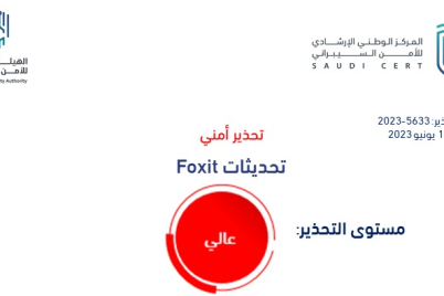 اصدر المركز الوطني الإرشادي للأمن السيبراني تحذير أمني بإجراء التحديثات الأمنية على منتجات Foxit مستوى الخطورة ● عالى الوصف: أصدرت...