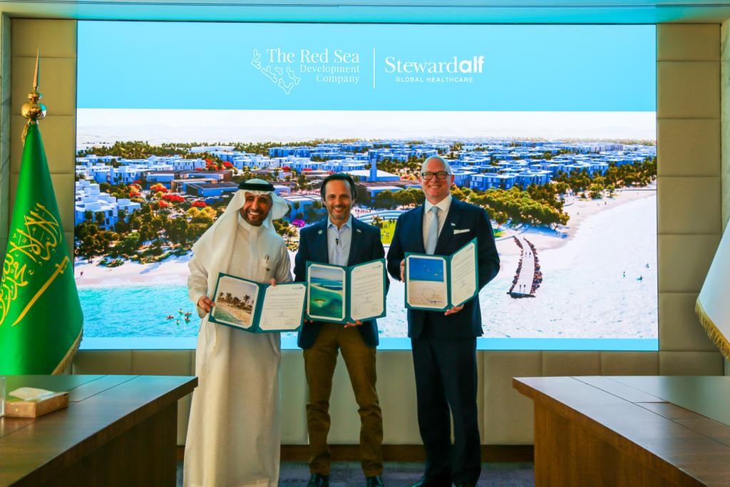 قام بتوقيع الاتفاقية من جانب شركة ألف السيد صباح المطلق، ومن جانب شركة ستيوارد السيد أرمن إرنست، ومن جانب شركة البحر الأحمر السيد جون بجانو، حيث تهدف الاتفاقية إلى تقديم رعاية صحية متميزة لزوار مشروع البحر الأحمر والمقيمين فيه، ويقع هذا المستشفى ضمن المشروع بسعة 40 سريرا، ويبدأ العقد بفترة تصميم مدتها سنتان وفترة تشغيل مدتها 5 سنوات.