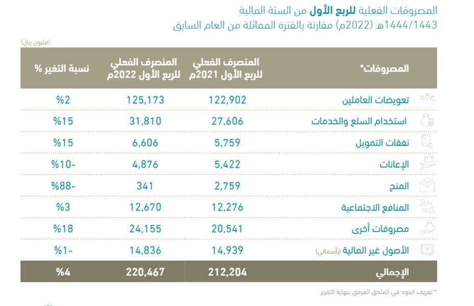 وفيما يخص المصروفات الفعلية، تصدرت تعويضات العاملين الأعلى في المصروفات بقيمة 125.1 مليار ريال، يليها استخدام السلع والخدمات بـ 31 مليار ريال، ثم الأصول غير المالية بـ 14.8 مليار ريال.