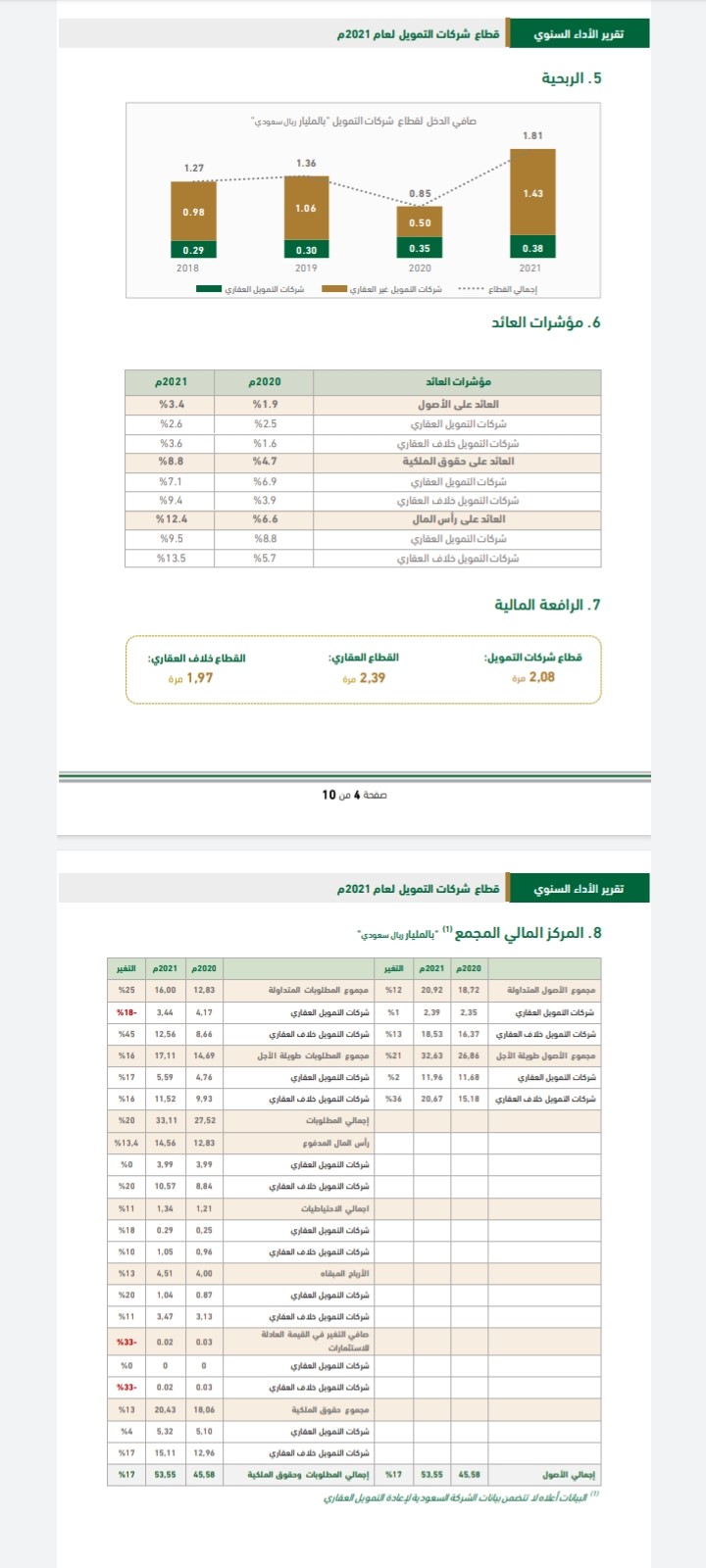 أصدر البنك المركزي السعودي التقرير السنوي الثاني عن أداء قطاع التمويل في المملكة، الذي يُبرز تطورات ونتائج القطاع خلال عام 2021م، إضافة إلى نتائجه المالية، وتأتي هذه الخطوة كجزء من التزام البنك المركزي بتوفير معلومات دقيقة وحديثة عن أداء قطاع شركات التمويل في المملكة.