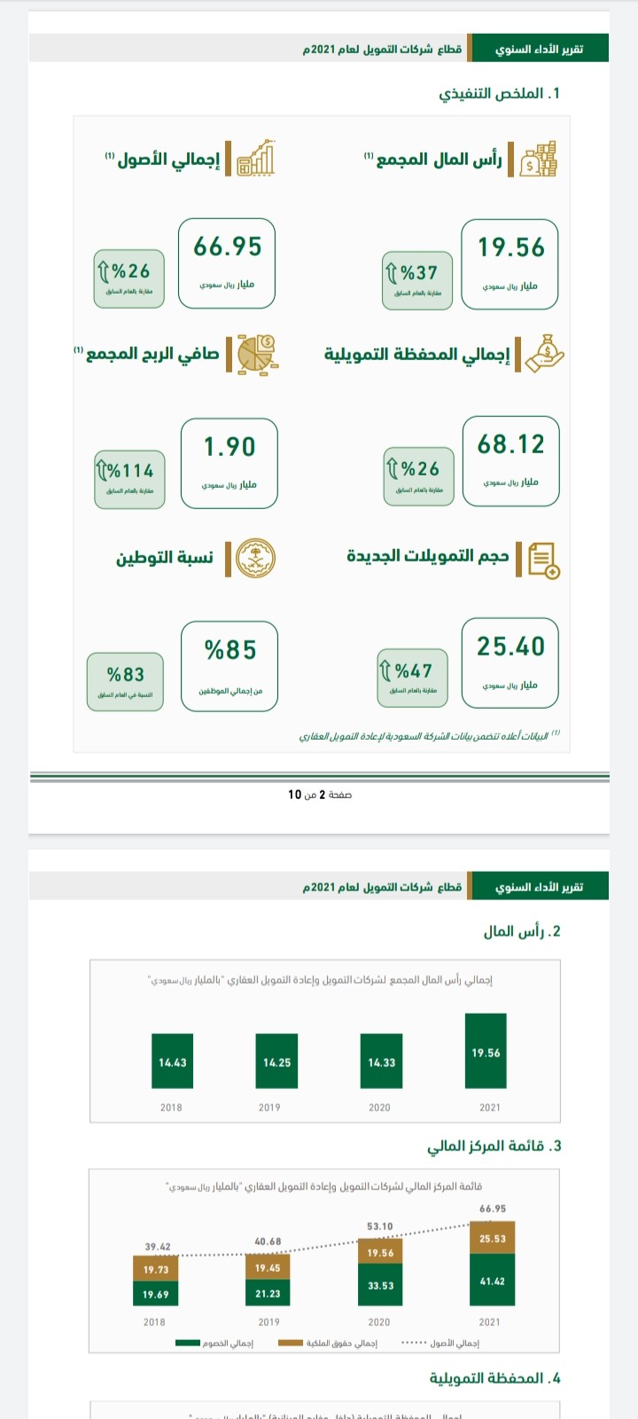 وكشف التقرير أن حجم التمويلات الجديدة بلغ 25.4 مليار ريال فيما بلغت إجمالي الأصول 66.9 مليار ريال وبلغ رأس المال المجمع 19.5 مليار ريال.