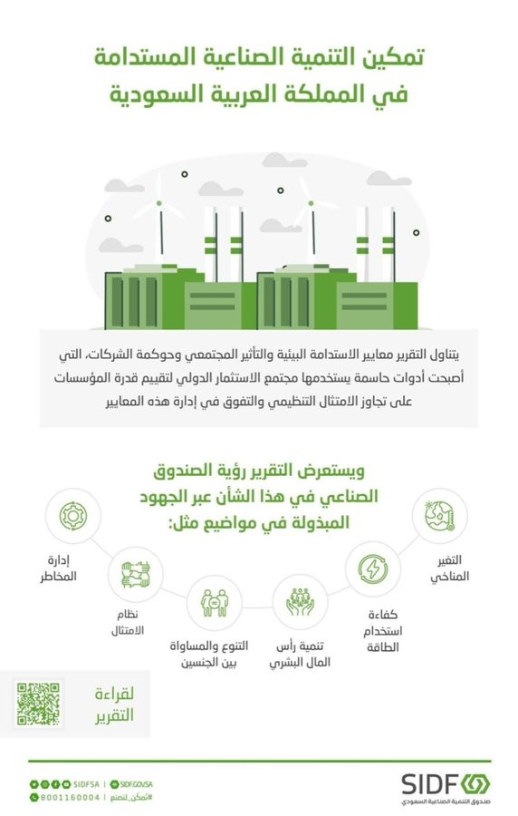 أطلق صندوق التنمية الصناعية السعودي، تقريره الأول للاستدامة، تحت عنوان: "تمكين التنمية الصناعية المستدامة في المملكة العربية السعودية" .