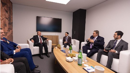 وبحث الجانبان تعزيز جهود البلدين في حفظ الأمن والاستقرار في منطقة الشرق الأوسط، بالإضافة إلى استعراض أبرز الموضوعات المطروحة على جدول أعمال “دافوس 2023” ومنها دفع عجلة التنمية المستدامة حول العالم.