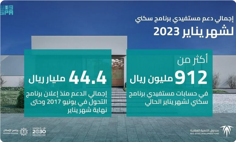 الصندوق العقاري يودع أكثر من 912 مليون ريال في حسابات مستفيدي “سكني” لشهر يناير