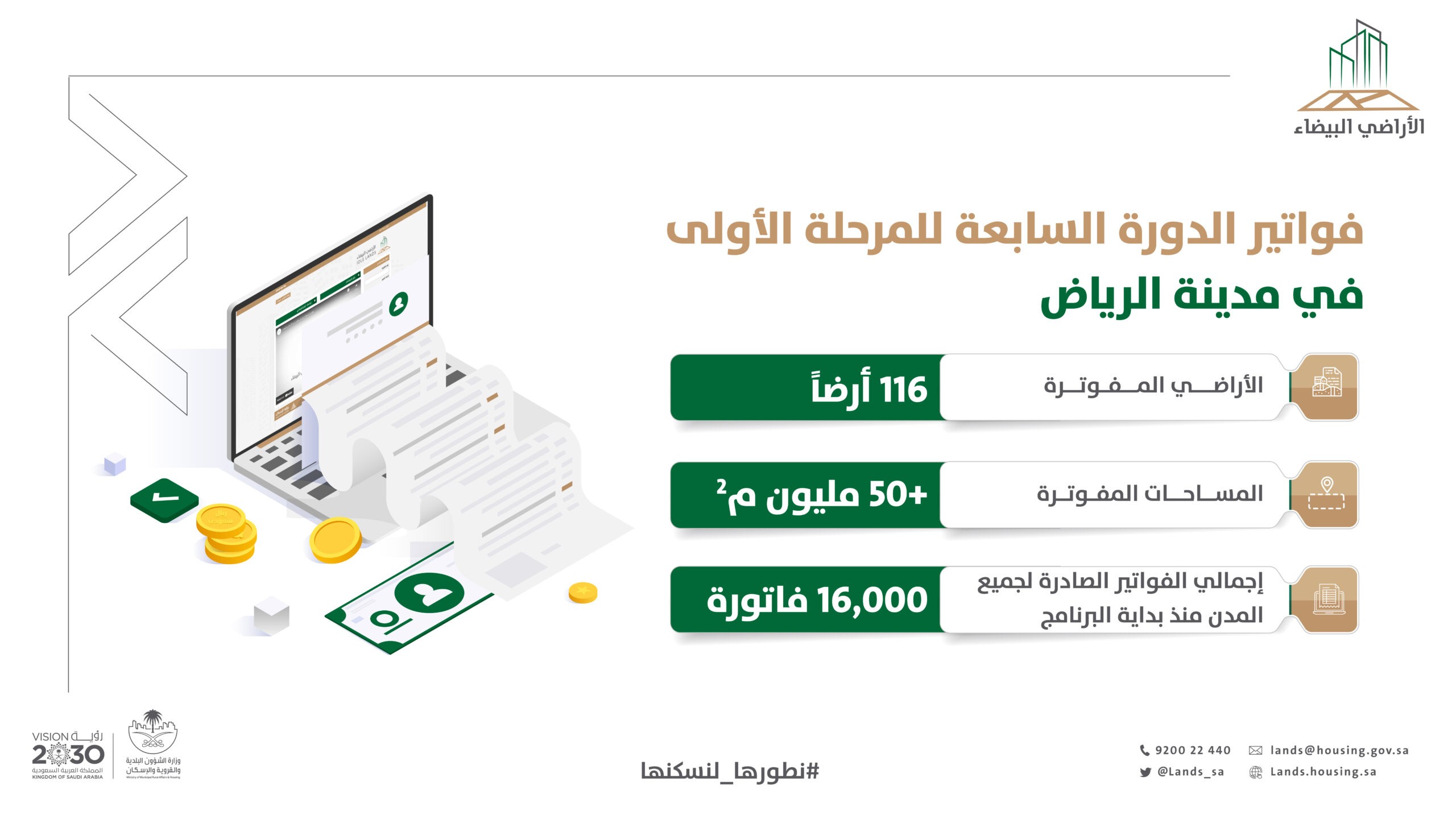 “الأراضي البيضاء”: فوترة الدورة السابعة للمرحلة الأولى في الرياض تتجاوز 50 مليون م2
