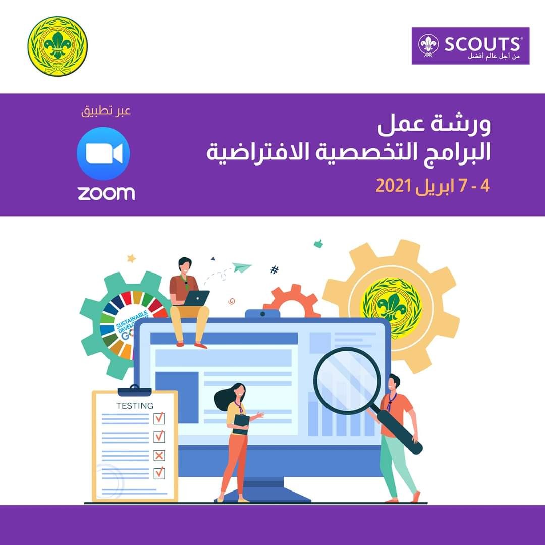 تًشارك جمعية الكشافة العربية السعودية ، يوم غدٍ في ورشة عمل البرامج التخصصية الافتراضية، والتي تعقدها المنظمة الكشفية العربية - الإقليم الكشفي العربي- وتستمر حتى يوم الأربعاء القادم الموافق 7 ابريل .